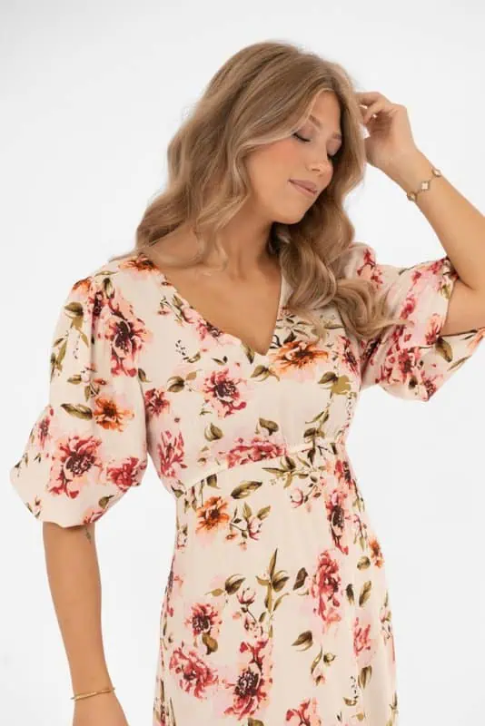 Aveline Klänning – Romantisk blommig sommarklänning i creme och rose