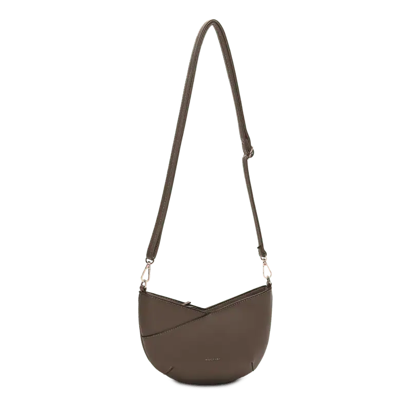 Taupefärgad crossover i asymmetrisk halvmåneform från Puccini – stilren, modern och lätt att bära varje dag.