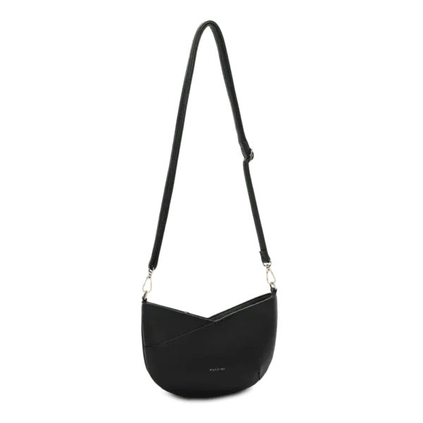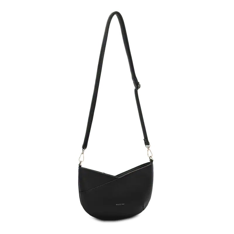 Svart crossover från Puccini i halvmåneform – elegant, stilren och lätt att bära varje dag.
