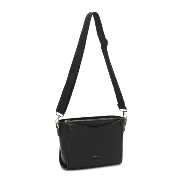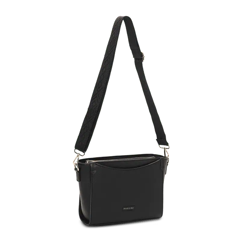 Svart crossoverväska från Puccini med bred axelrem och stilren design – perfekt för en elegant och organiserad vardag.