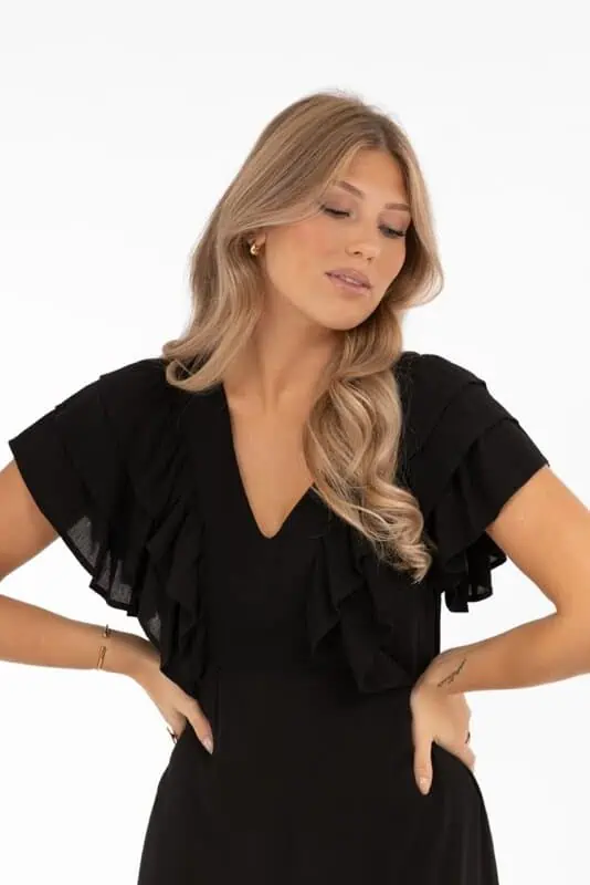 Empire Klänning – Elegant volangklänning i svart