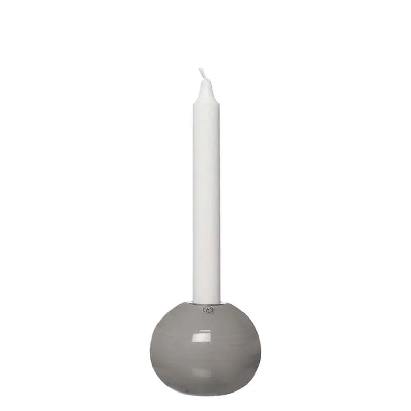 Elegant liten ljusstake i grått glas från ERNST – en tidlös detalj för små ytor och vackra stilleben.
