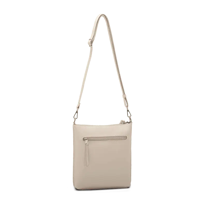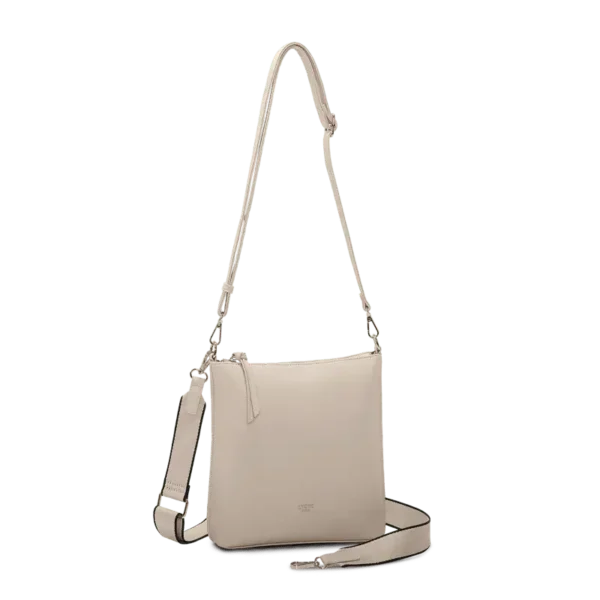 Lycke Sandnes – beige crossover-väska i konstläder med justerbar rem och silverdetaljer. En tidlös väska med skandinavisk enkelhet.