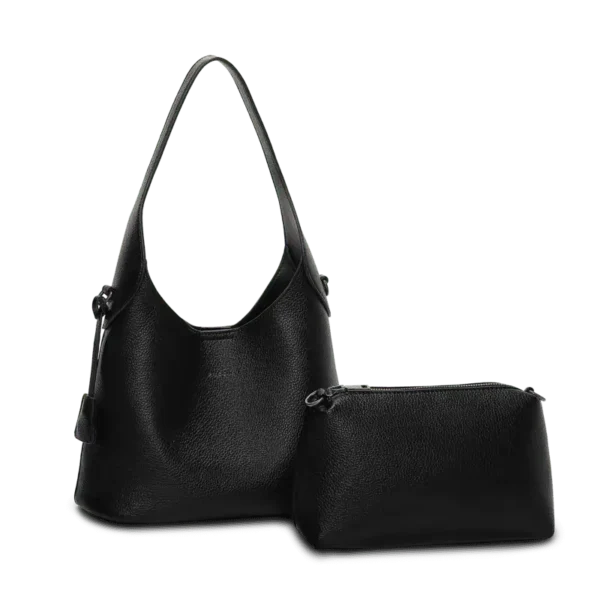 Miriam svart axelväska från Puccini – rymlig och elegant med tillhörande innernecessär i veganskt läder.