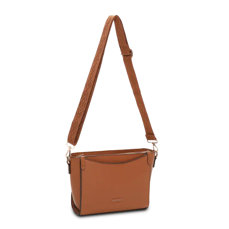 Stilren crossover från Puccini i cognac – en praktisk och elegant väska för vardagens alla tillfällen.