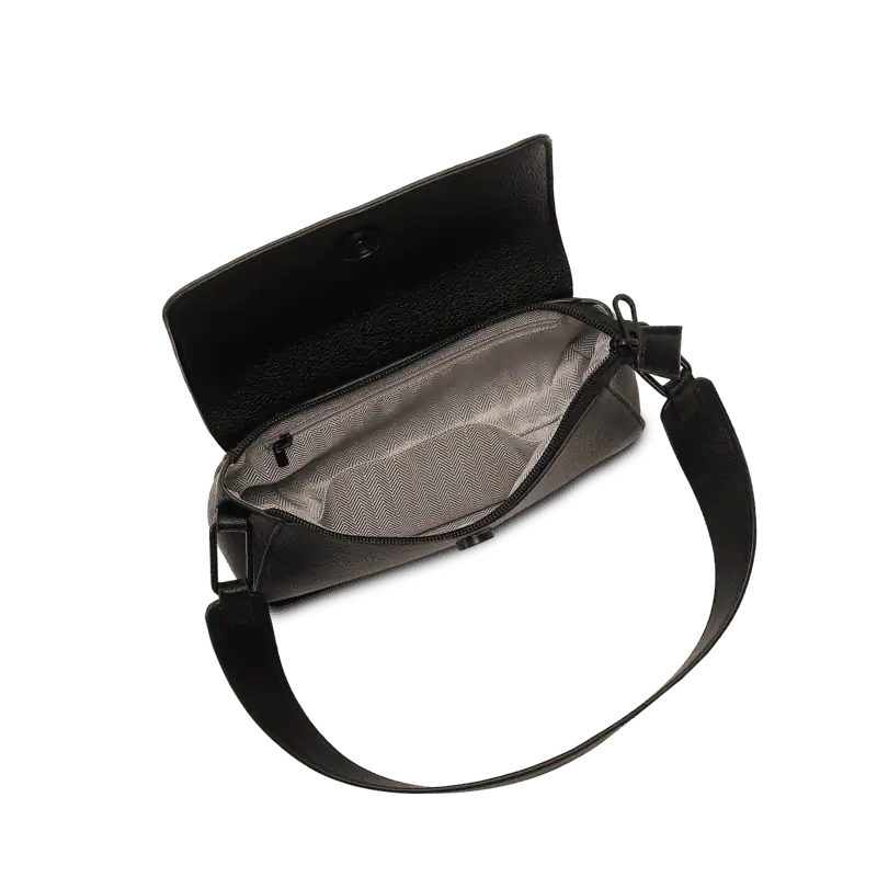 Puccini Alessia Flap Bag i svart konstläder – elegant, lättburen och tidlöst designad axelväska med lock och justerbar rem.