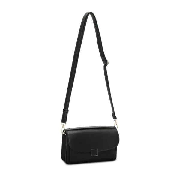 Puccini Martina Flap Bag – svart axelväska i konstläder med lock, magnetstängning och tidlös, minimalistisk design.