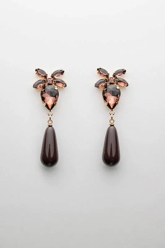 Stone Drop Earrings – Elegans med ett glittrande djup i brunt
