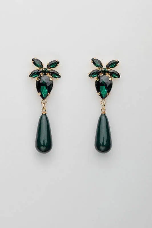 Eleganta örhängen med droppform i brun harts och glittrande zirkonstenar. Lätta, nickeltestade och perfekta för både vardag och fest.