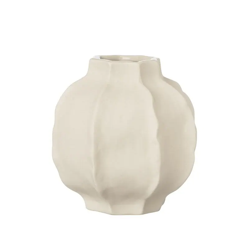 Organisk elegans i stengods – en vas med form och närvaro. Den här vasen från ERNST bjuder på ett vackert möte mellan funktion och konstnärligt uttryck. Med sina mjukt skulpterade linjer och naturvita, matta yta blir den både ett blickfång och en harmonisk del av rummet. Formen är inspirerad av naturens rörelse, och passar lika fint med en enkel kvist som med en liten bukett.