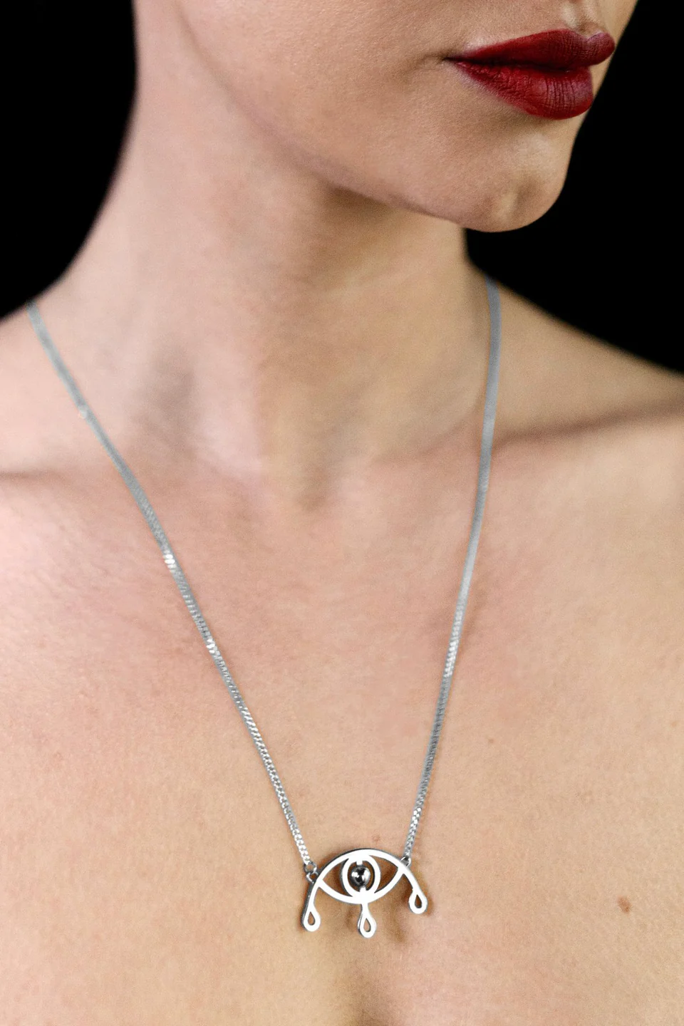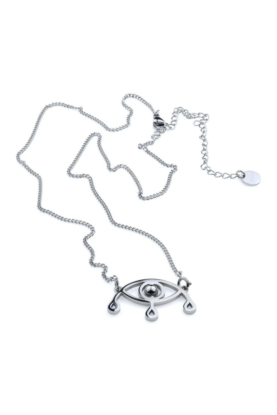 Voyance halsband i rostfritt stål från Sägen – ett stilrent smycke med öga och tårar, för inre klarhet och personlig styrka.